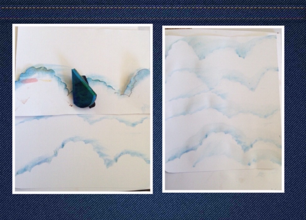 Two weeks back we had been to this amazing beach called "Grey whale cove" near half moon bay. We drove to the top of the hill and from there we overlooked the beach. Then we took a wooden staircase to go down to the waters. The beach was calm with a big lighthouse on top of a mountain and the different shades of blue in the water was clearly visible.An hour before the sunset the sky prepares itself by changing its colour. We can see pink, violet and yellow colour of the sky This is the hour I love most so tried to imbibe all of these in my creation.